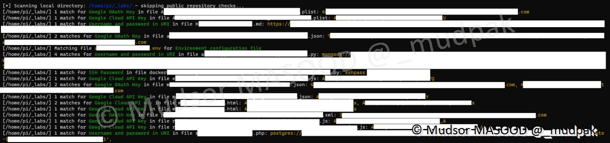 Nous avons vu le cas où on peut attendre que shhgit scanne les dépôts publics et on peut trouver tous types d’éléments sensibles.