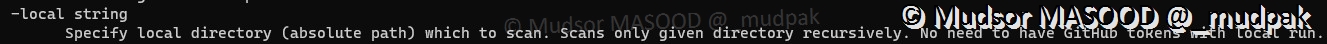 Il est également possible de scanner vos propres dépôts publics avant par exemple leur publication que des plateformes, ainsi vous vous assurez de ne pas avoir oublié un élément sensible.
