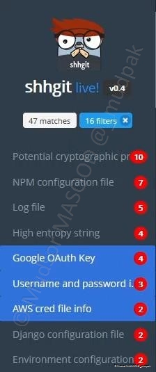 De par sa fonction, shhgit va vous permettre de trouver des données sensibles voire hautement confidentielles et donc par nature des données qui ne devraient pas être publiquement accessibles.