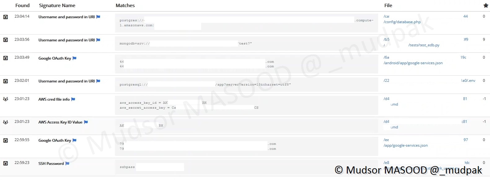 Pour ma part il m’a suffit d’attendre environ 30 minutes pour voir des clés privées SSH, clés API voire des accès à des bases de données.